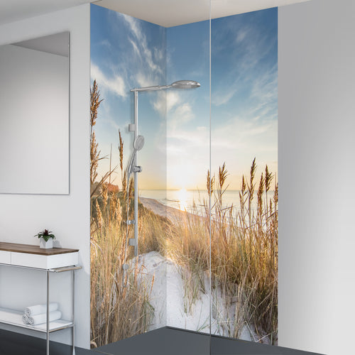 Um Platz für das Silikon zu lassen, welches für die Abdichtung der Duschrückwand bei der Montage aufgetragen wird, sollten von den genommenen Maßen einige Millimeter abgezogen werden: